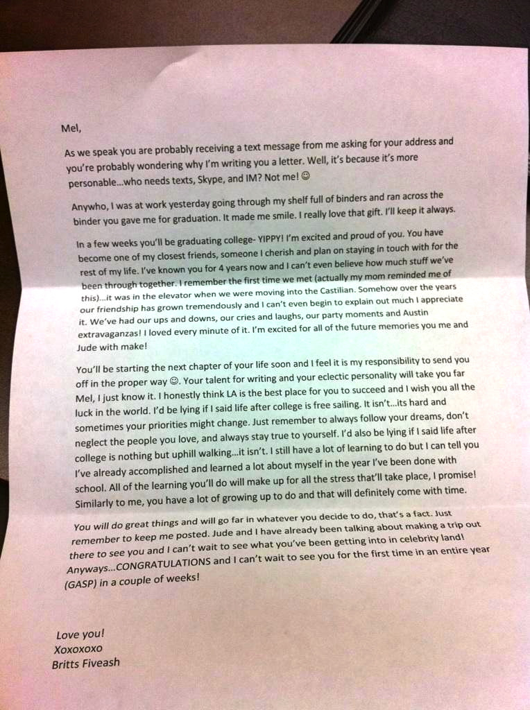 Anyways, so I read this letter from my friend. She passed on post-college-graduation-advice to me and radiated how proud she was of me, and said how one day I will “do great things and that’s a fact,” and I swear to God I nearly sobbed my eyes out.